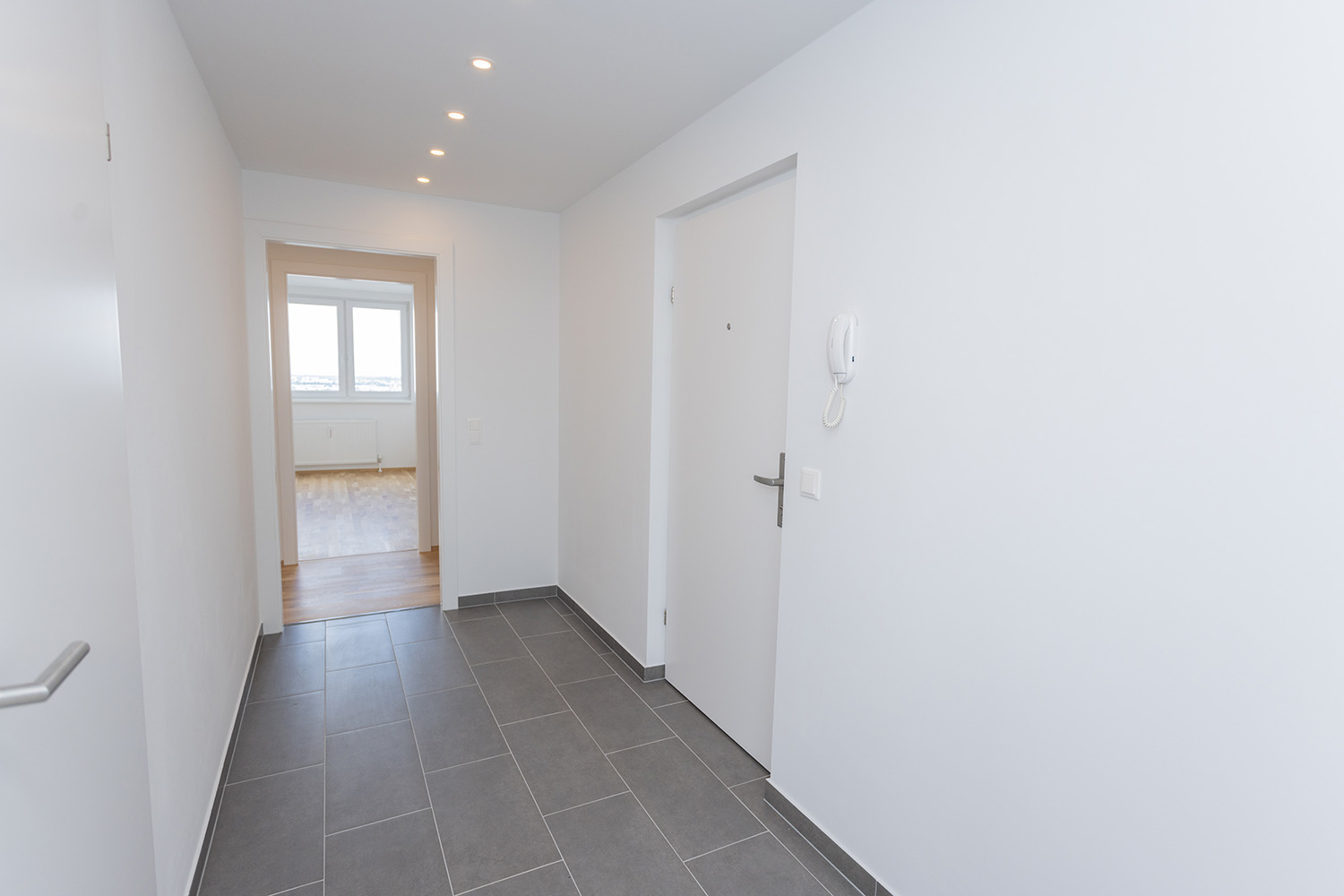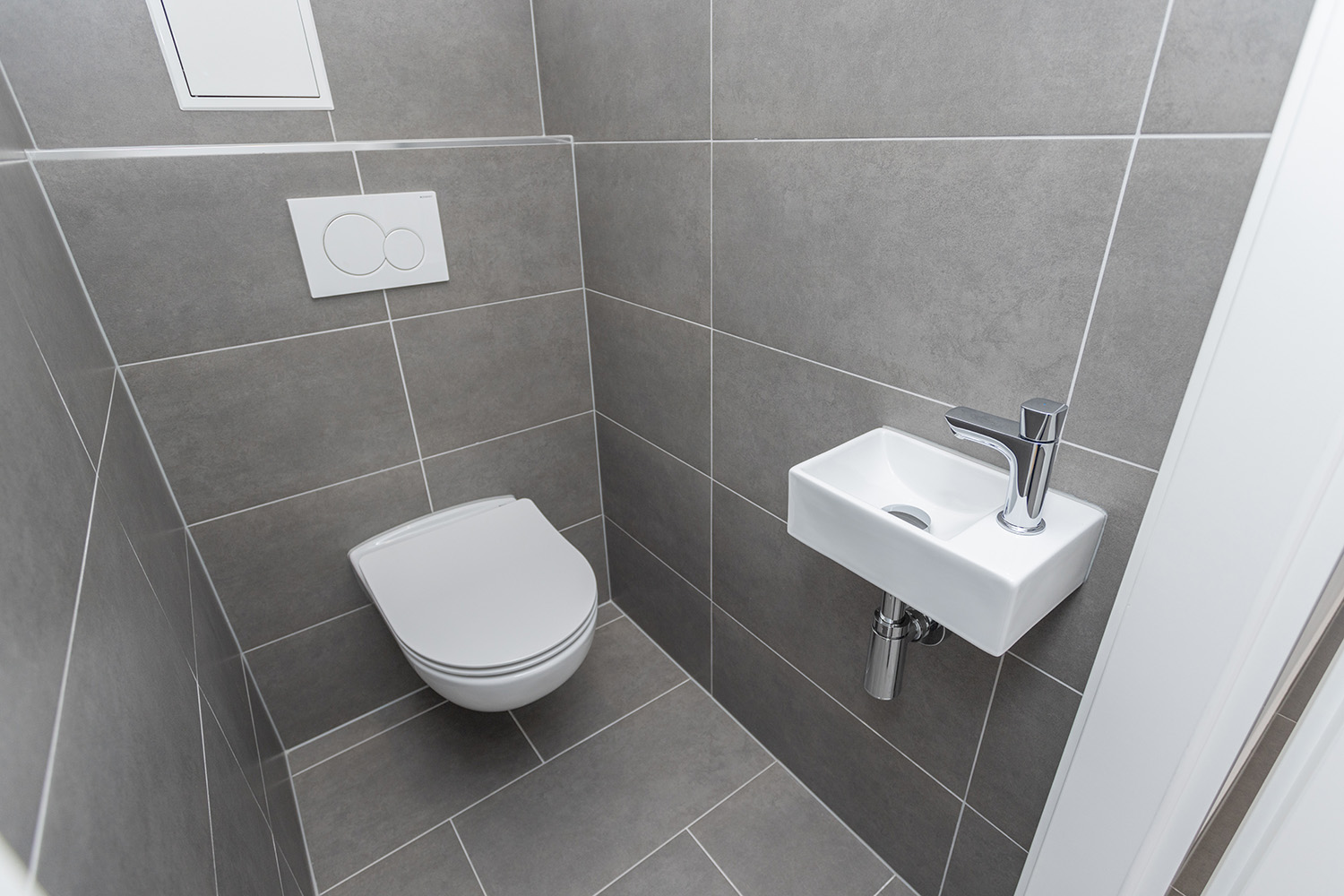 – Feinsteinzeug-Fliesen in Vorraum, Bad und WC