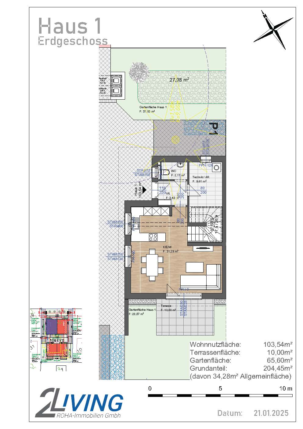 Gebaut von Firma 2Living Roha-Immobilien GmbH, entstehen insgesamt 2 Doppelhäuser mit 4 Wohneinheiten, die in hochwertiger Ziegelmassivbauweise errichtet werden.